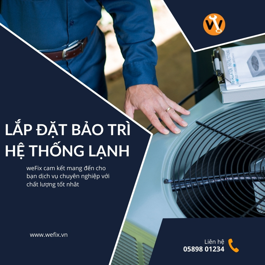 WEFIX chuyên cung cấp dịch vụ bảo trì hệ thống lạnh cho văn phòng , nhà xưởng, siêu thị, shop… Với đội ngủ kỹ thuật có nhiều năm kinh nghiệm trong lĩnh điện lạnh. Chúng tôi cam kết mang đến cho khách hàng dịch vụ chuyên nghiệp nhất uy tín nhất, và chi phí tốt .