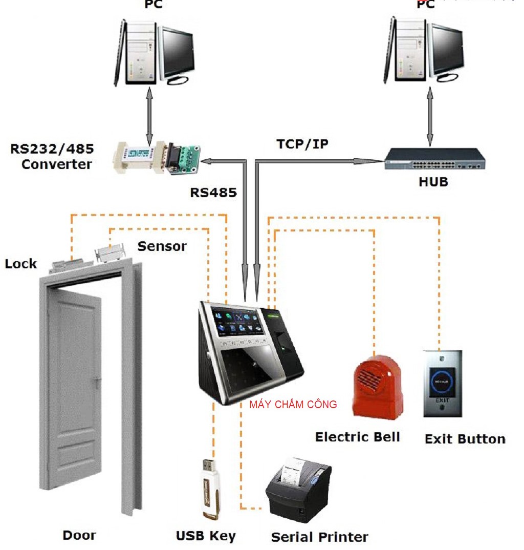 Hầu hết tất cả các hệ thống kiểm soát cửa, khóa cửa vân tay, hoặc hệ thống kiểm soát có chấm công thì sẽ có kết hợp với khóa điện( khóa chốt thả hoặc khóa lực hút nam châm).