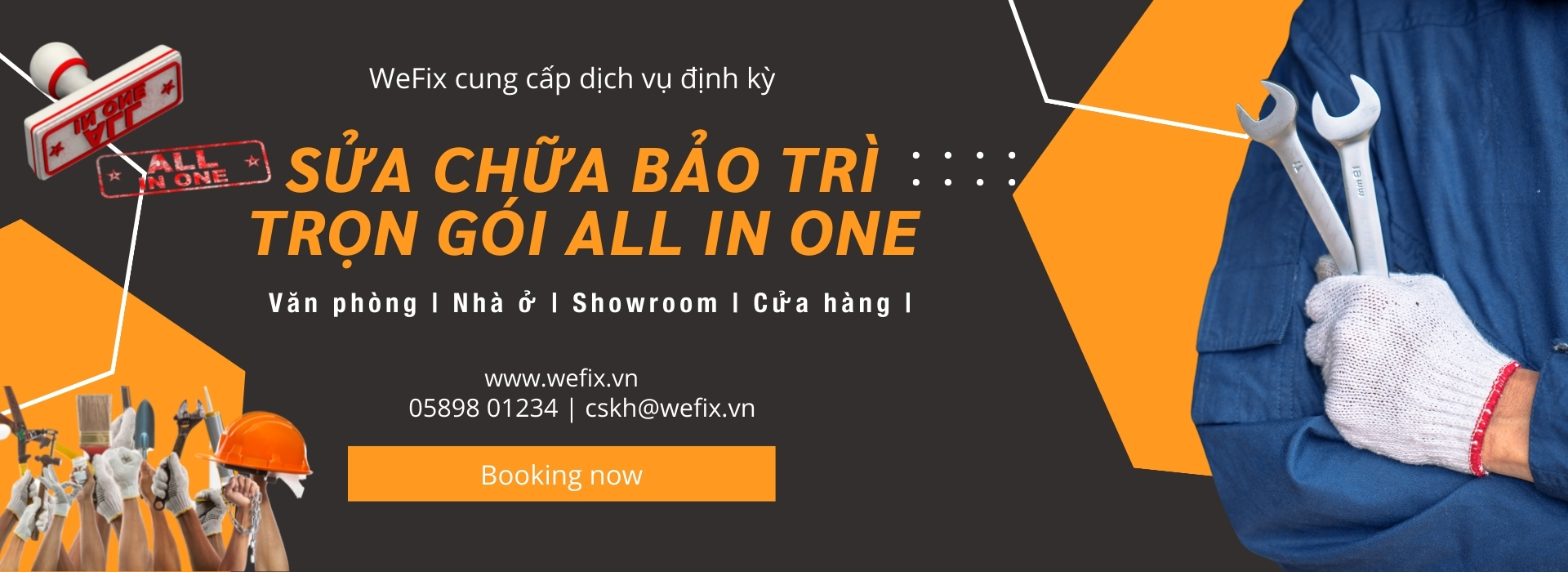 Với dịch vụ bảo trì trọn gói của Wefix.vn chúng tôi sẽ cung cấp cho doanh nghiệp 1 đội ngủ kỹ thuật sửa chữa bảo trì cho văn phòng bạn đủ các ngành nghề với đầy đủ trang thiết bị chuyên dụng, và tập thể kỹ sư chuyên môn cao giám sát từ xa sẵn sàng hỗ trơ, doanh nghiệp có thể lựa chọn sử dụng dịch vụ trọn gói hoặc các gói IT, Điện nước, Nội thất riêng linh hoạt theo nhu cầu của mình. Doanh nghiệp có thể lựa chọn dịch vụ của Wefix bảo trì định kỳ hoặc theo từng đợt.